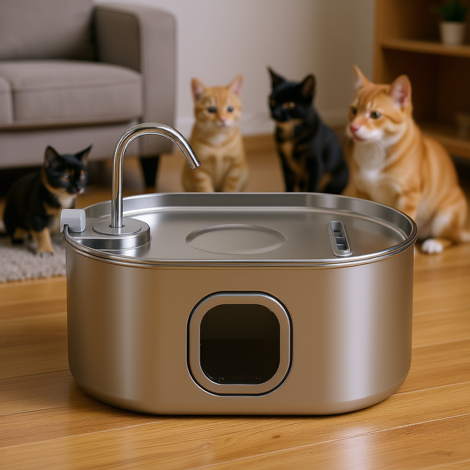Fontanella per gatti Silver Cat da 7 litri in acciaio inossidabile ultra silenziosa per case con più animali domestici