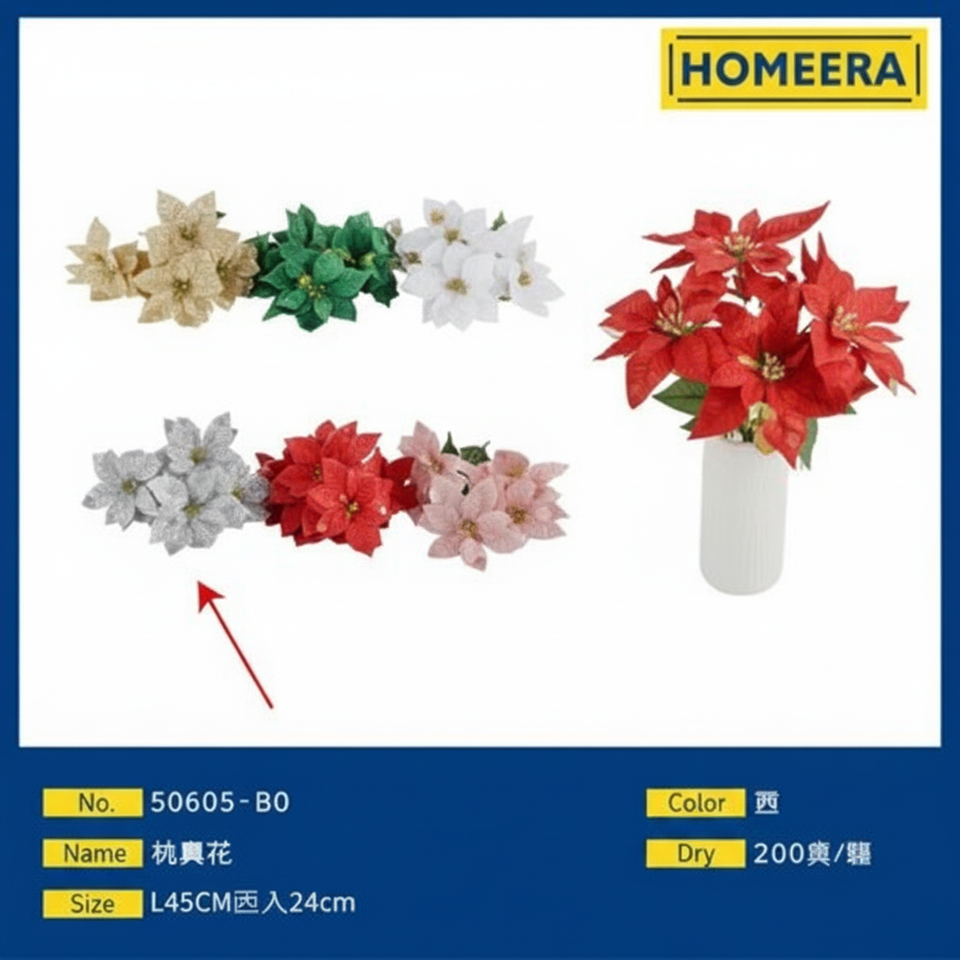 Silver Color Artificial Flowers with Iron Wire Plastic Material for Valentine's Day Thanksgiving 45CM Flower Head 24CM Long