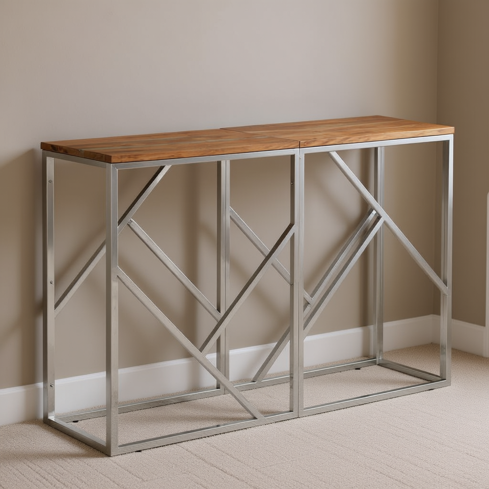 Silver Console Table Acacia Wood Top Modern Design Living Room Furniture