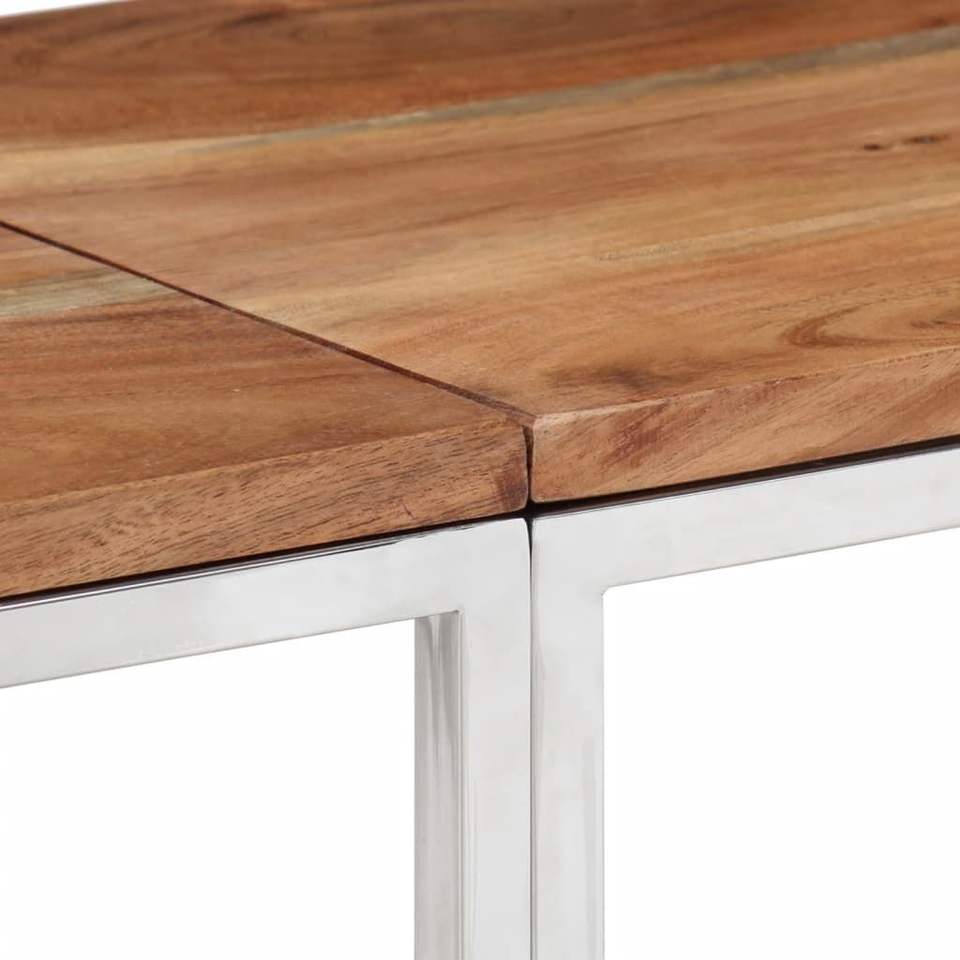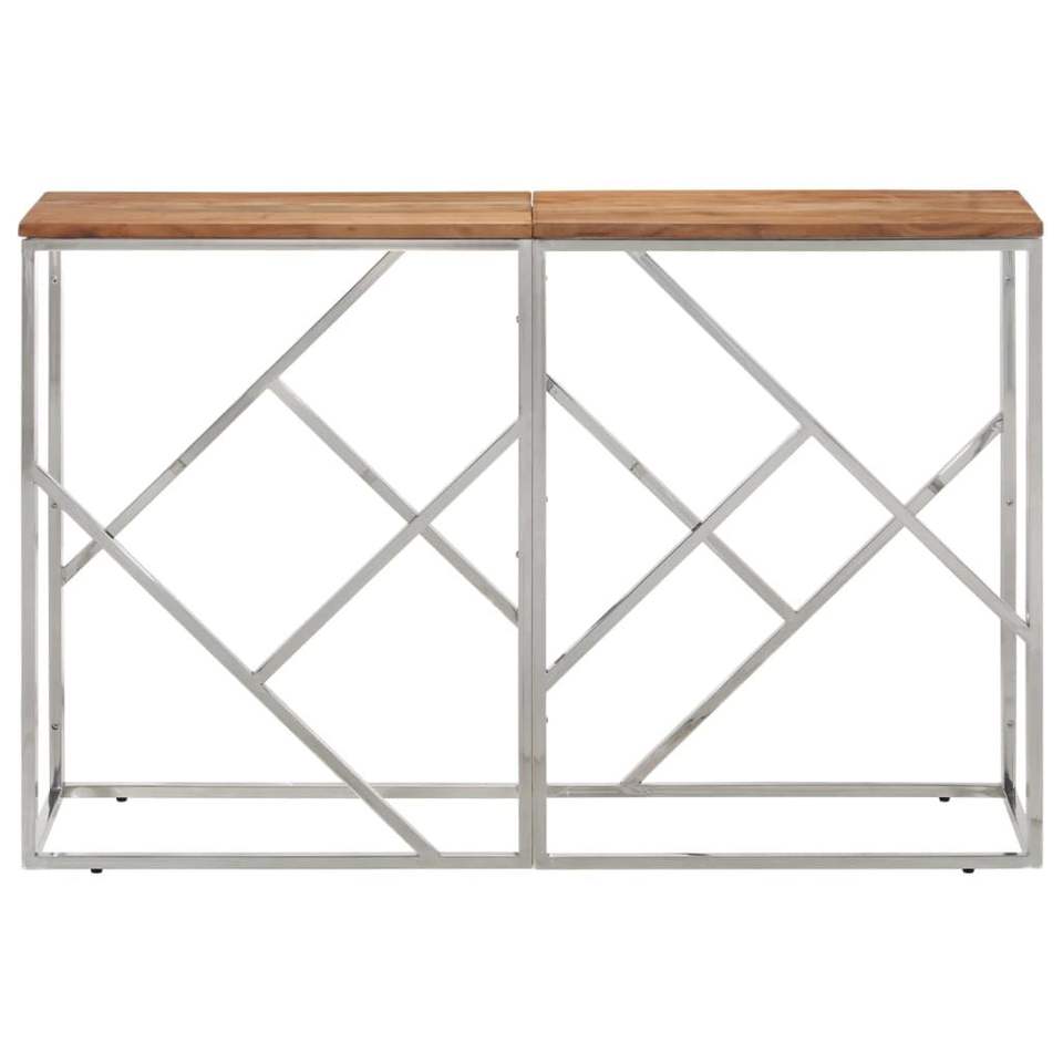Silver Console Table with Natural Acacia Wood Elegant Home Dcor