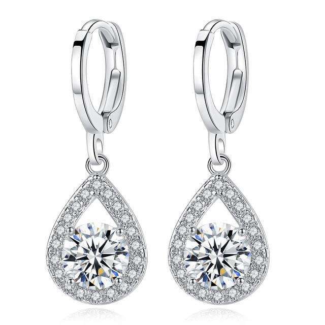 Orecchini in Argento con Diamanti Taglio a Pera, Colore G, Coltivati in Laboratorio, Placcati in Rodio, Gioielli Classici da Sposa per Donna