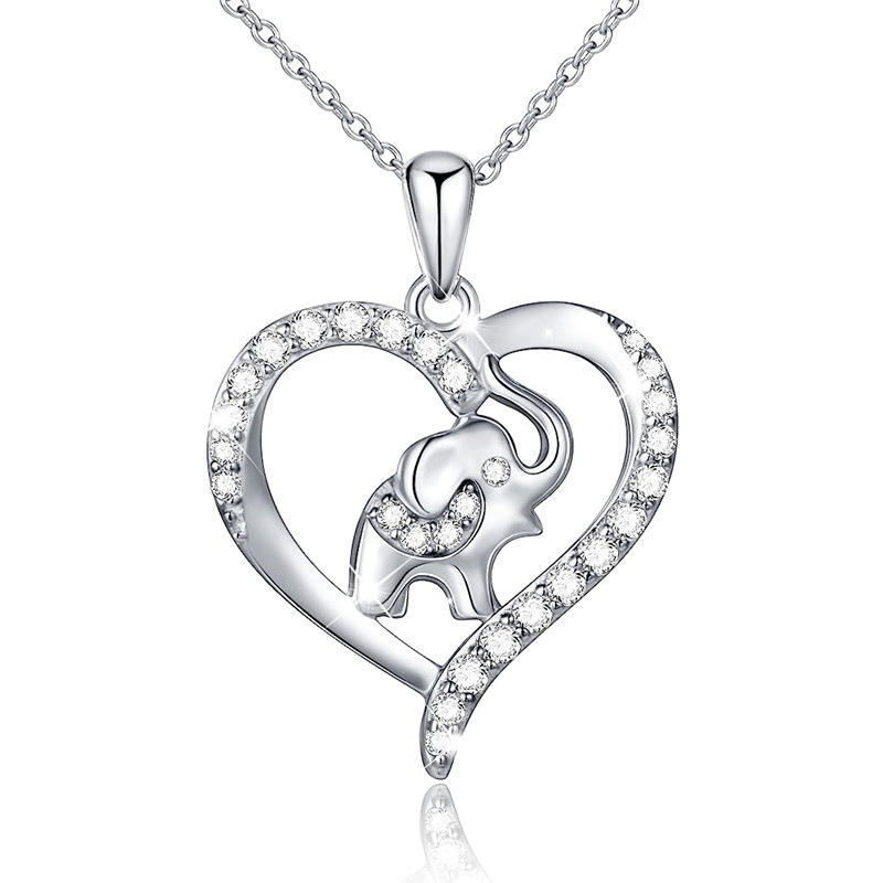 Ciondolo a Forma di Cuore con Elefante in Argento Sterling 925 Placcato Rodio con Cristalli e Strass, Gioiello Regalo per Donne e Uomini