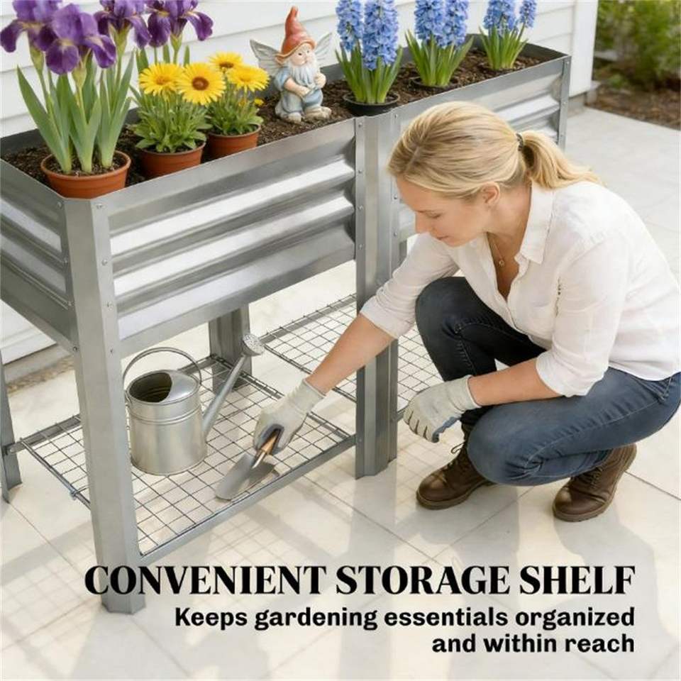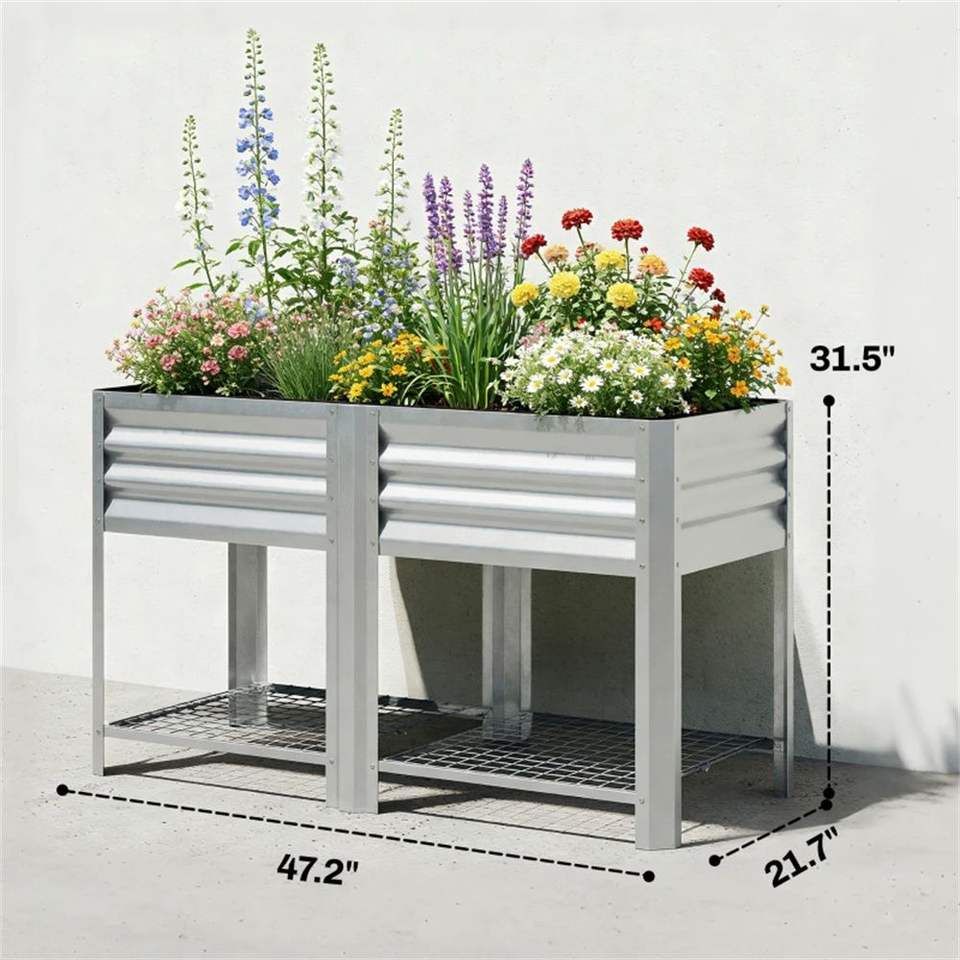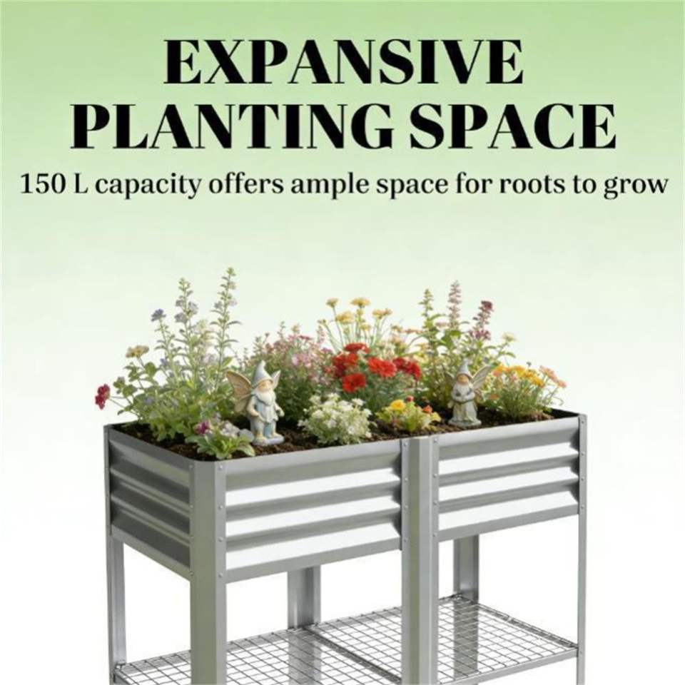 Silver Elevated Garden Bed & Plant Rack Flowerpot Box for Outdoor Planting Durable Storage Solution