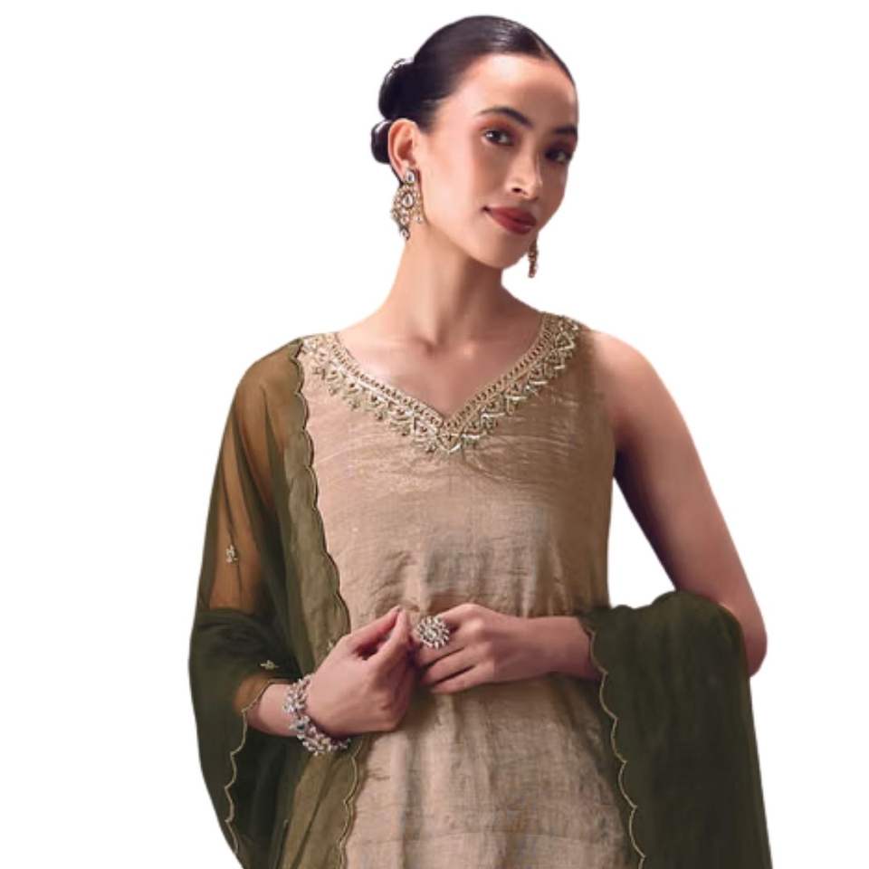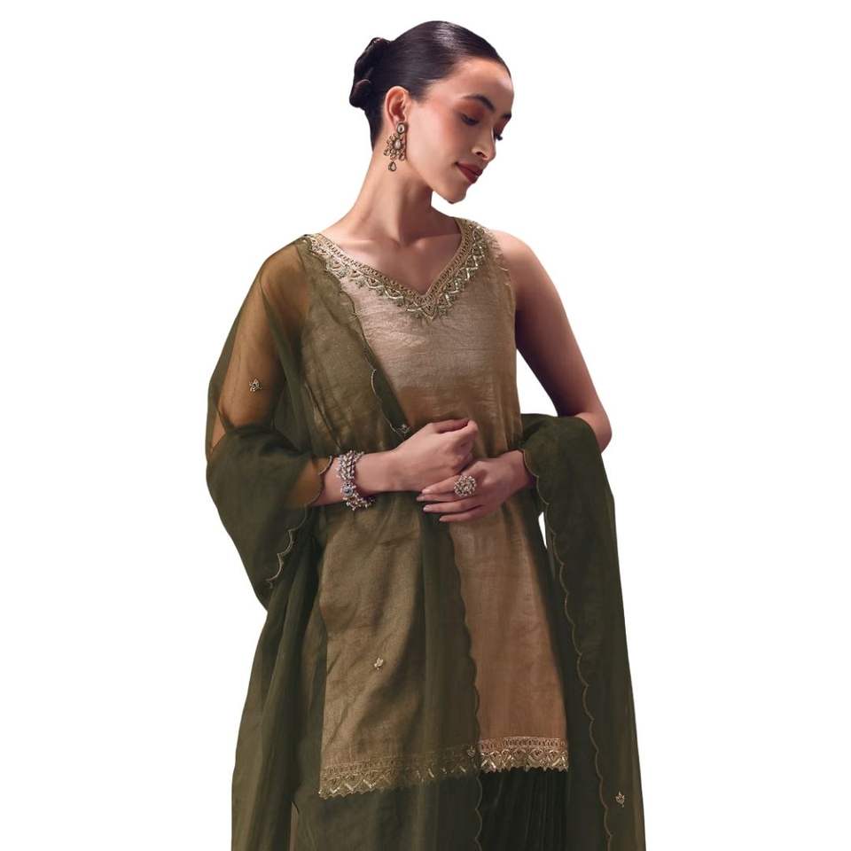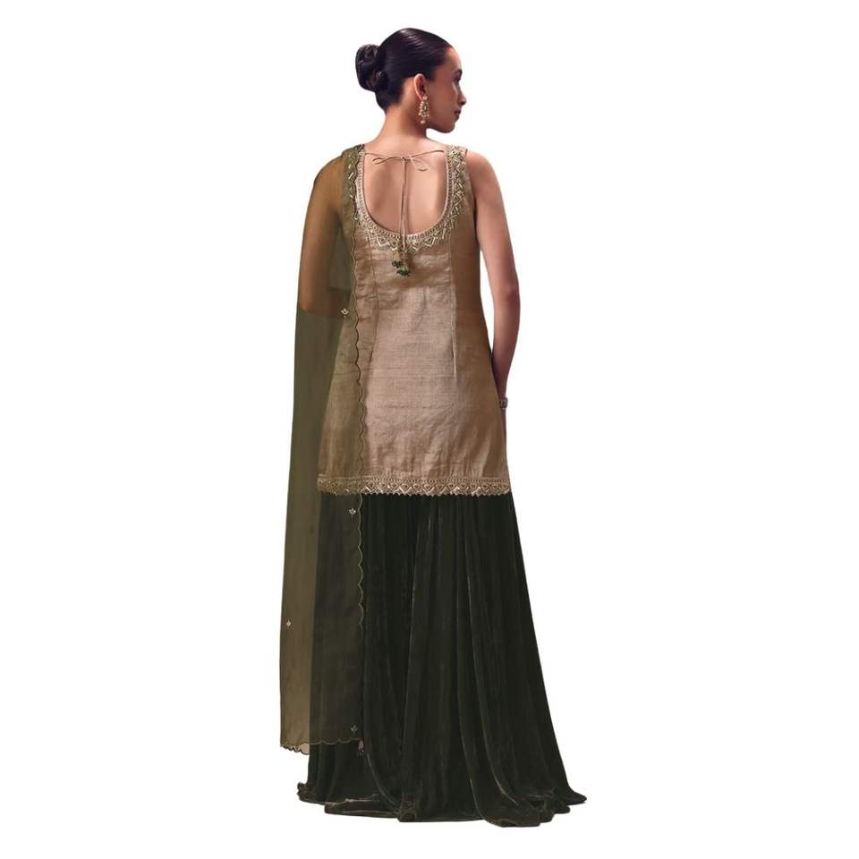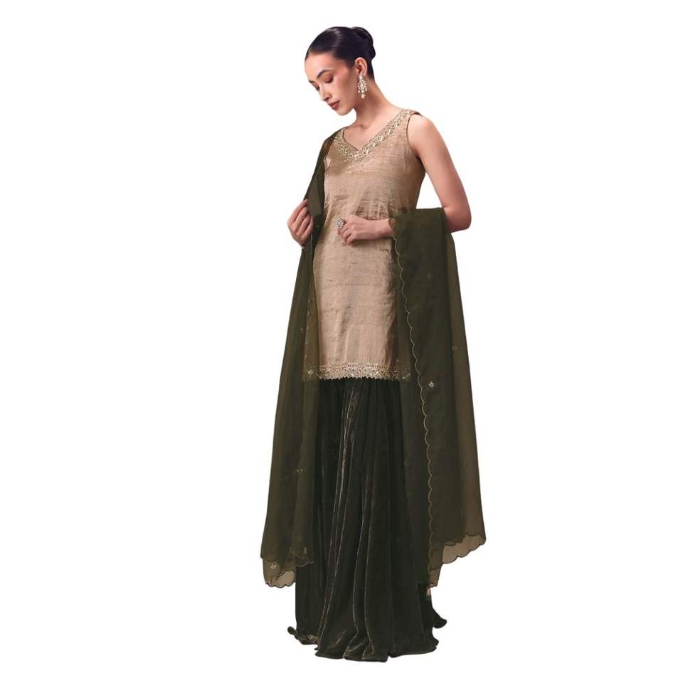 Silver Embroidered Tissue Kurta with Velvet Sharara and Dupatta Premium Womens Ethnic Wedding and Festive Wear Outfit