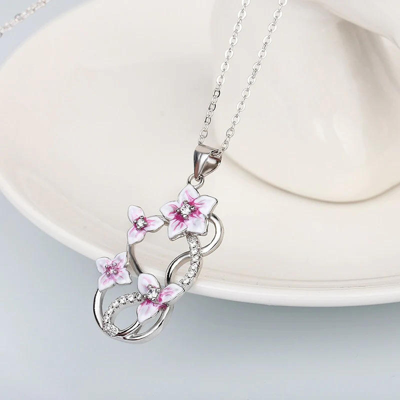 Ciondolo a Fiore in Argento con Cristalli e Strass, Collana Romantica da Donna per Uso Quotidiano, Argento Sterling 925 Placcato Rodio