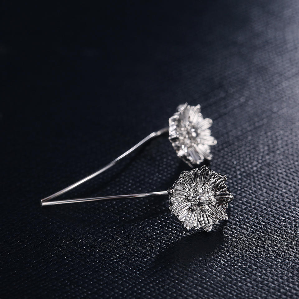 Silver Flower Stud Earrings With Crystal Rhinestone Claw Setting For Women Everyday Wear Classic Style E282