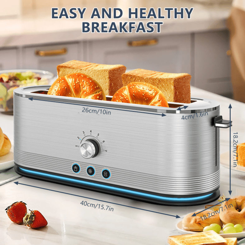 Tostapane Argento a Quattro Scomparti con 7 Livelli di Cottura e Design Anti-Intasamento, Funzioni Scongelamento/Riscaldamento/Cancellazione, 4 Scomparti da 1,5 Pollici