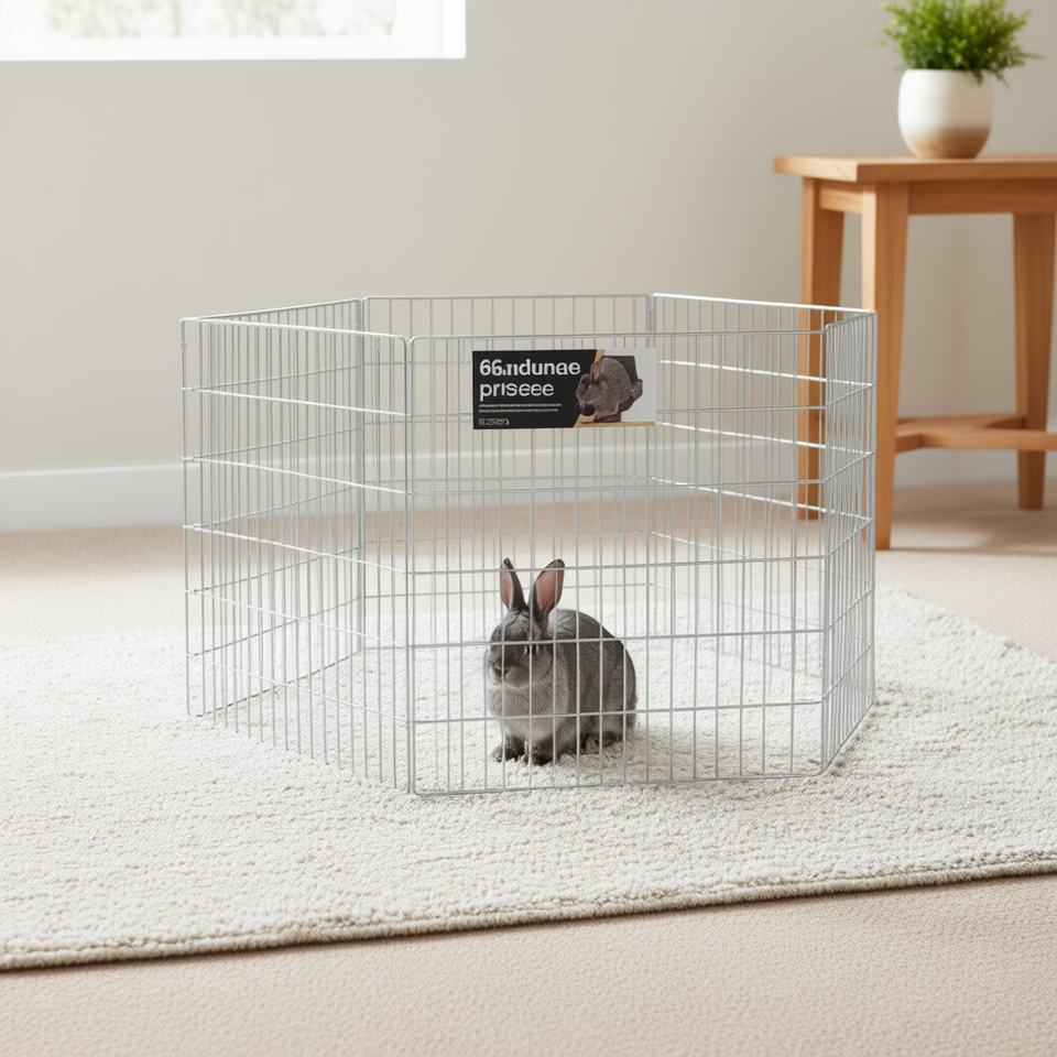 Recinto per Animali Domestici a 6 Pannelli in Ferro Zincato Argentato, Stile Moderno Rettangolare per Interni