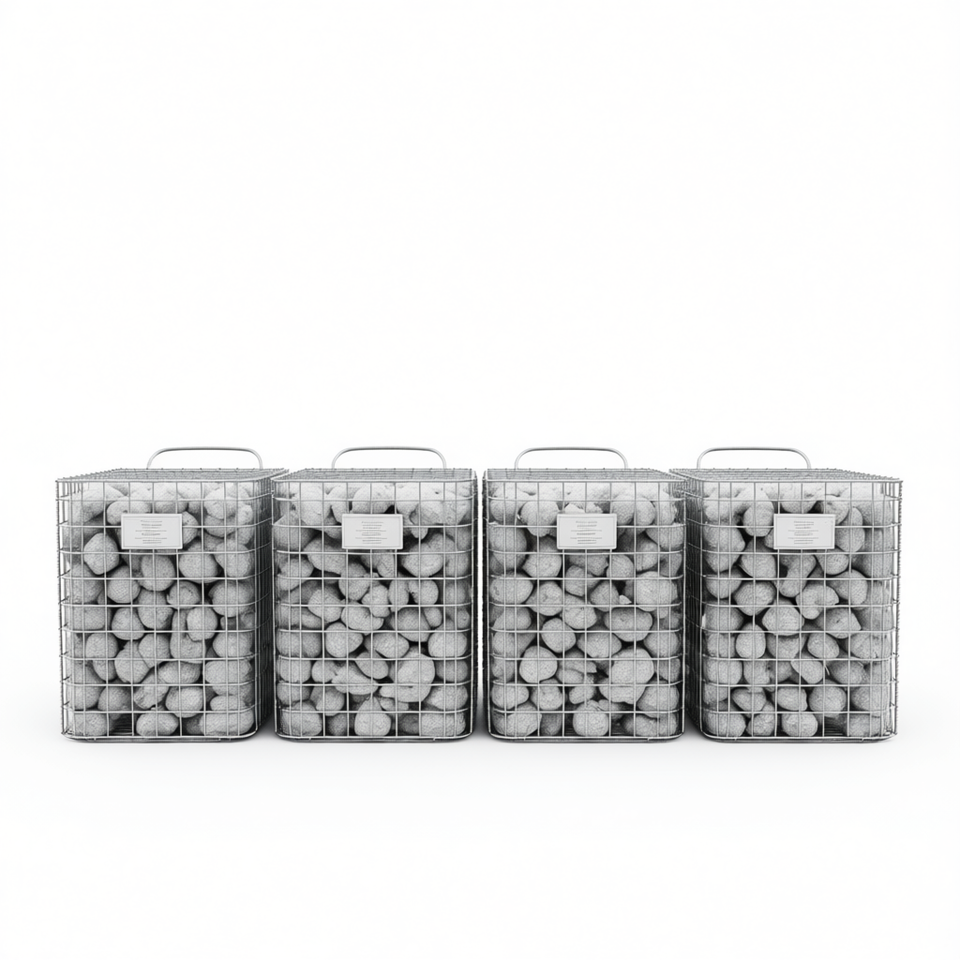 Silver Galvanized Iron Metal Gabion Baskets Set Of 4 Rectangular Storage Containers For Kitchen Organization Durable Industrial