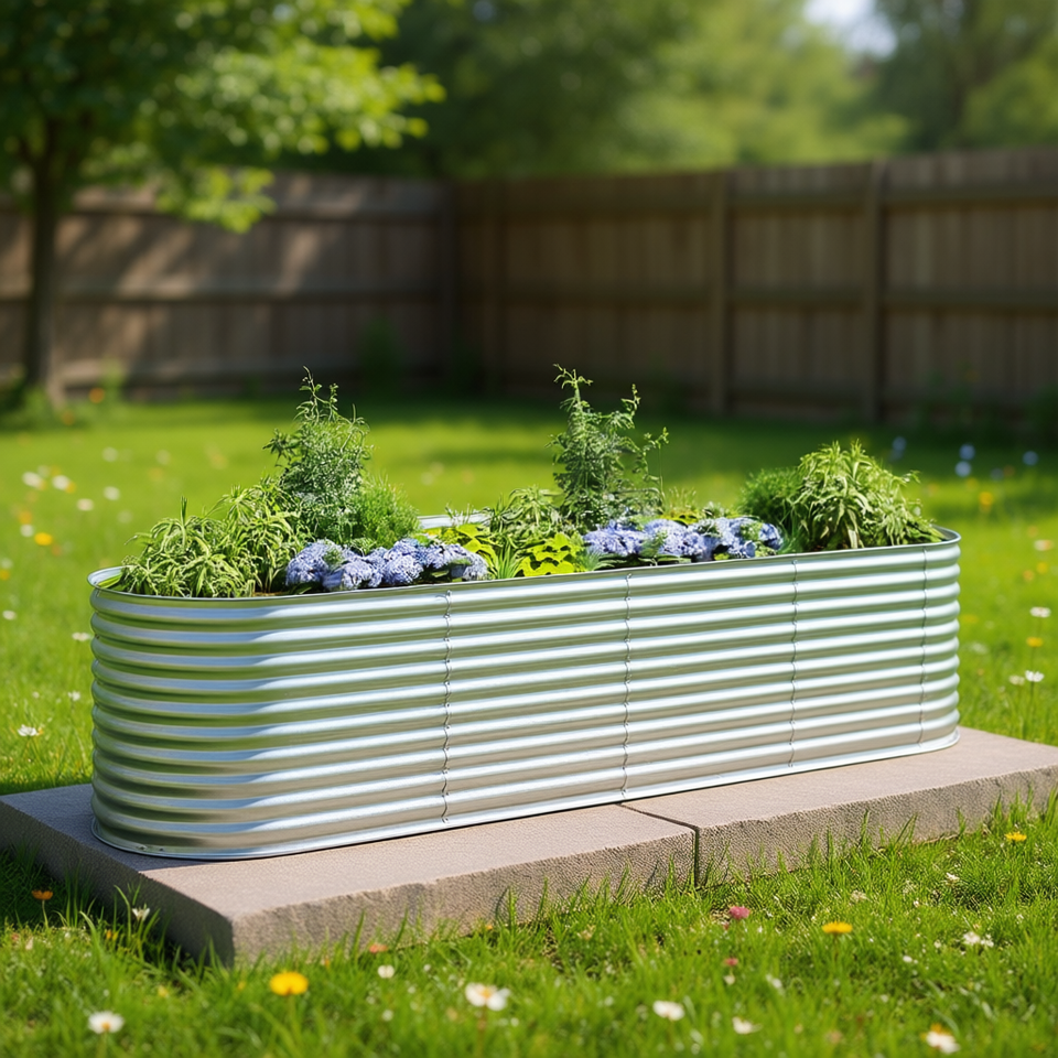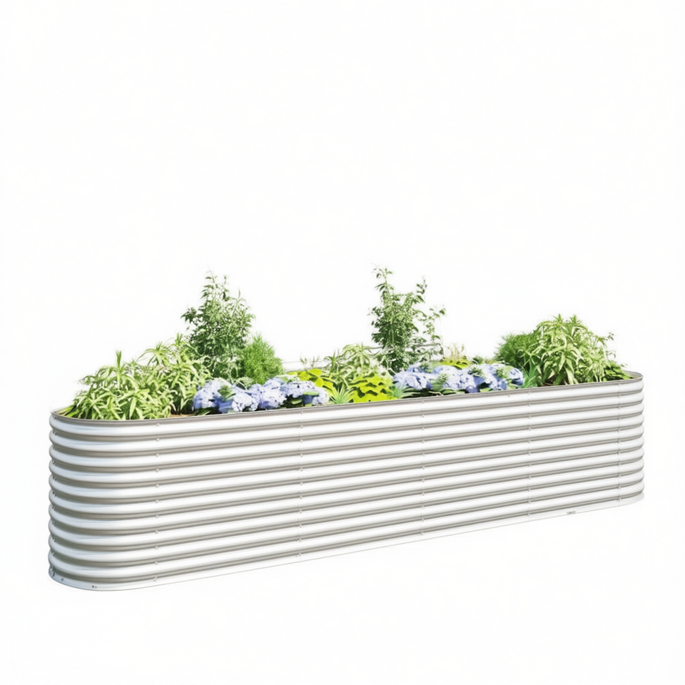 Silver Galvanized Steel Elliptical Raised Bed Garden Planter For Flowers And Green Plants