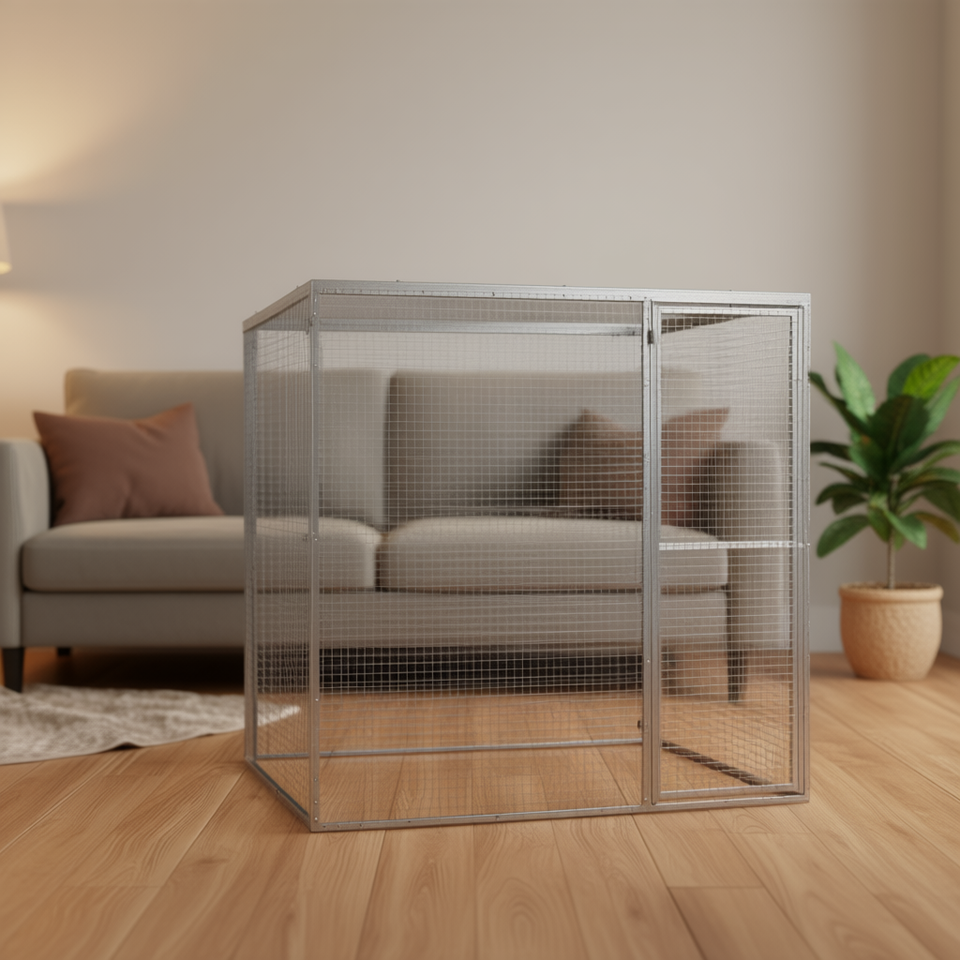 Gabbia per Gatti in Acciaio Zincato Argento, Grande e Quadrata, Chiudibile a Chiave, per Interni