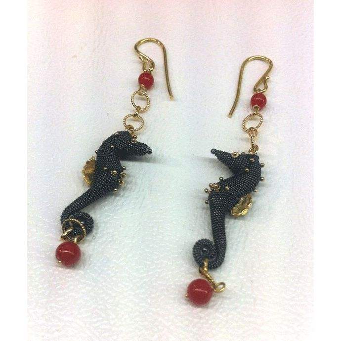 Seahorse earrings - silver, gold and coralBrand Name