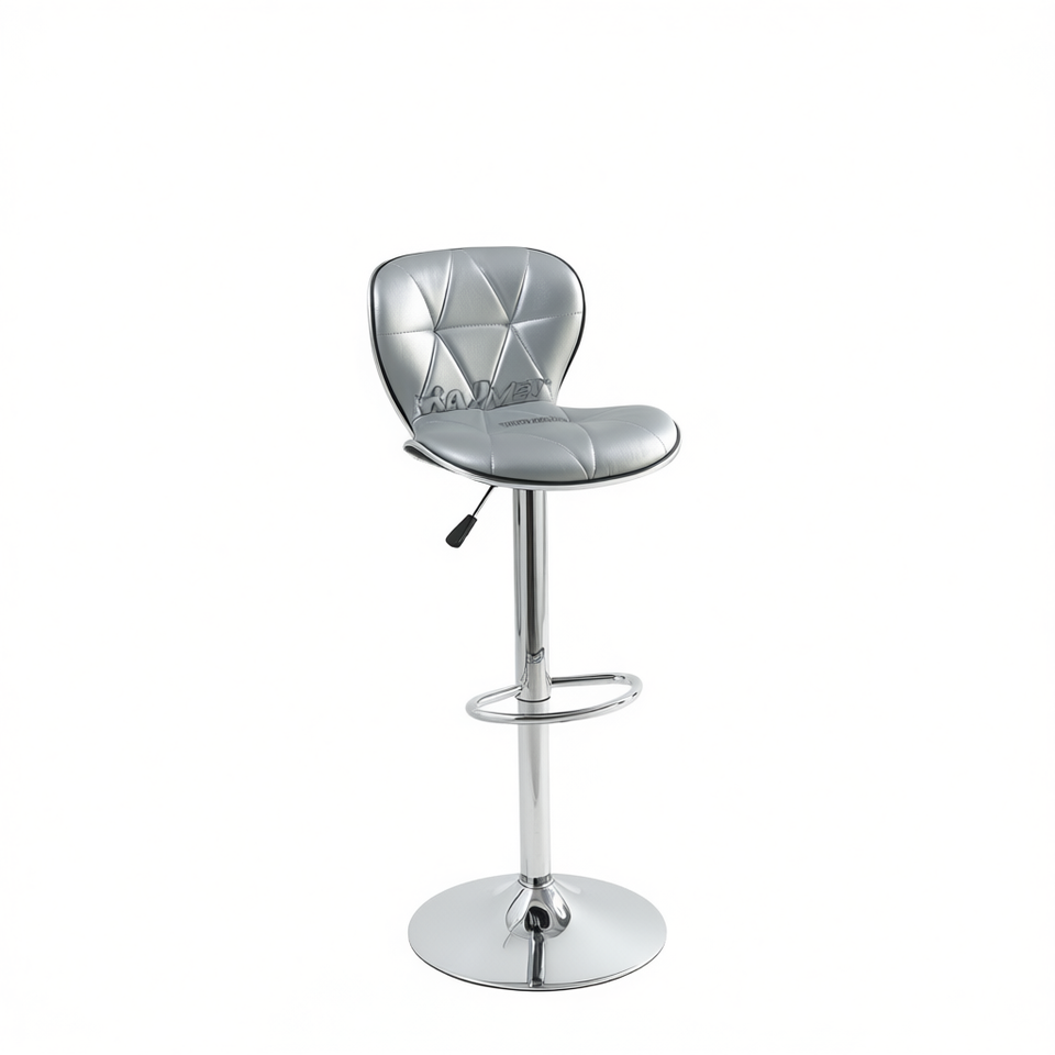 Sgabello da Bar in Ecopelle Grigio Argento, Base Cromata Regolabile, Design Contemporaneo per Isola Cucina, Arredamento Commerciale Moderno