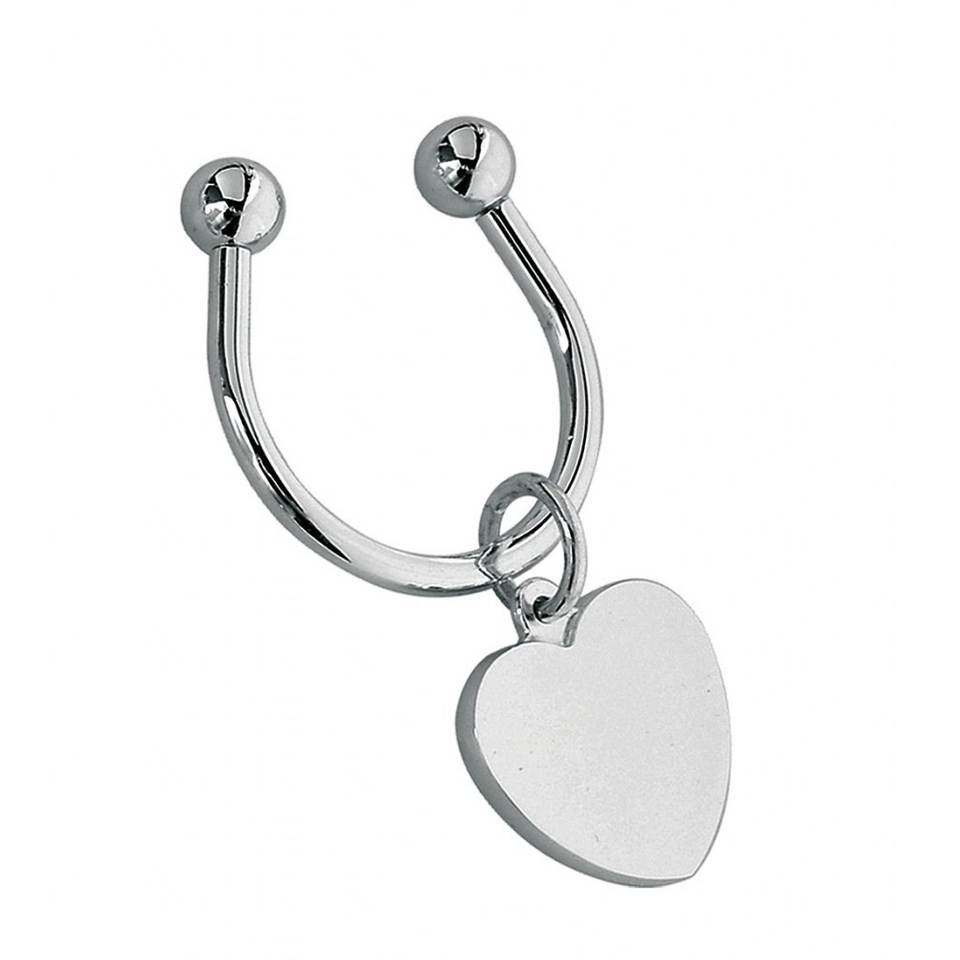 Portachiavi a forma di cuore in argento con ciondolo a placca per chiavi e borse