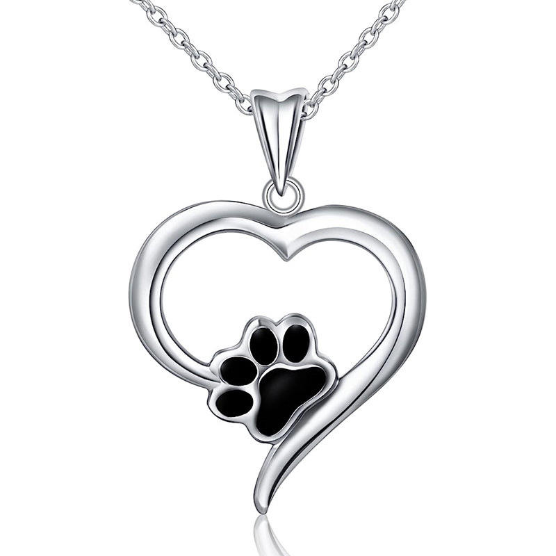Ciondolo a Cuore in Argento con Impronta di Zampa Nera, Placcato in Rodio, Argento Sterling 925, Regalo Romantico Unisex