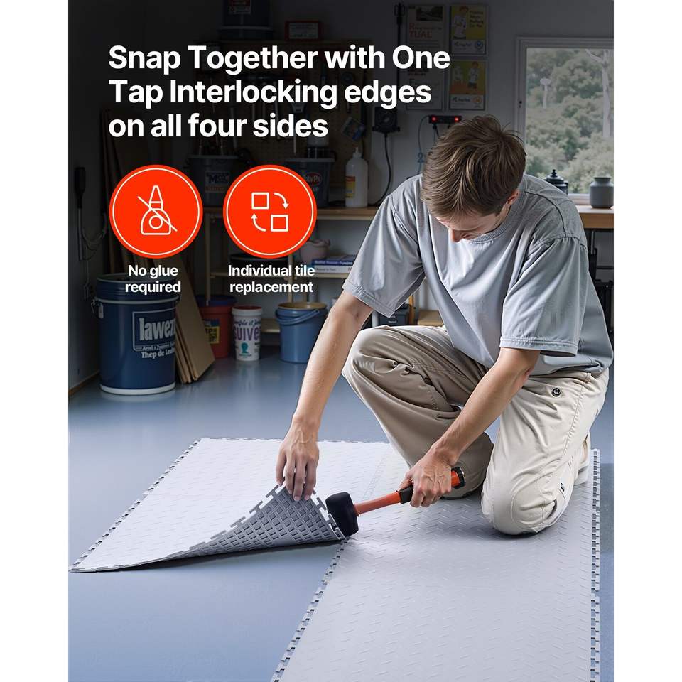 Piastrelle Modulari Incastrabili in PVC Argento per Pavimenti di Garage, Confezione da 8, 20,2 x 20,2 x 0,2 cm, Antiscivolo per Officina