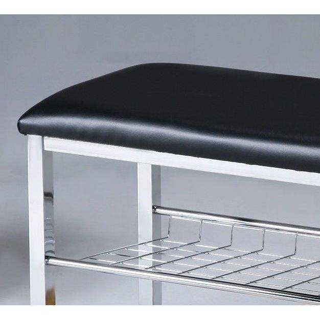 Silver Metal Shoe Bench with Black Faux Leather Seat Elegant Shoe Rack