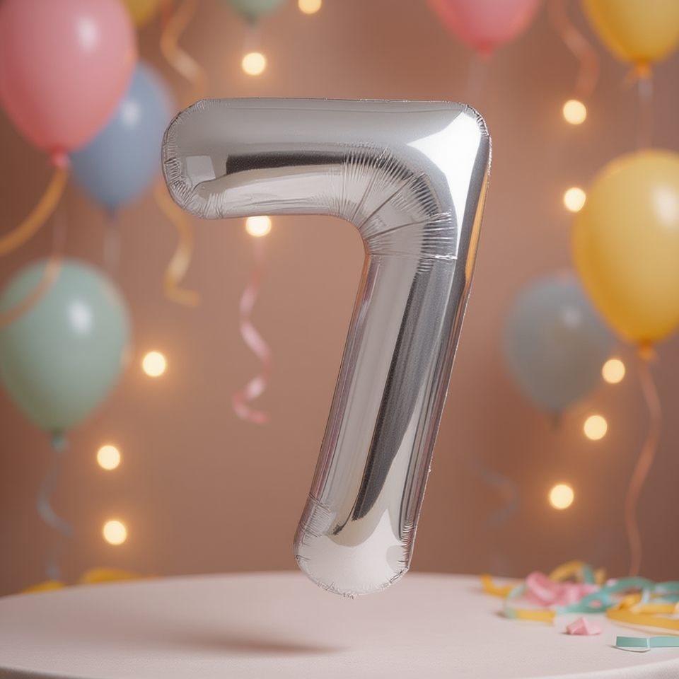 Palloncino in Foil Numero 7 Argento 80cm per Decorazioni Festa