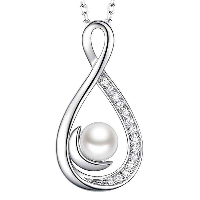 Ciondolo in Argento con Perla e Accento di Diamante a Forma di Goccia d'Acqua, Gioiello Romantico da Donna in Argento Sterling 925 Placcato Rodio