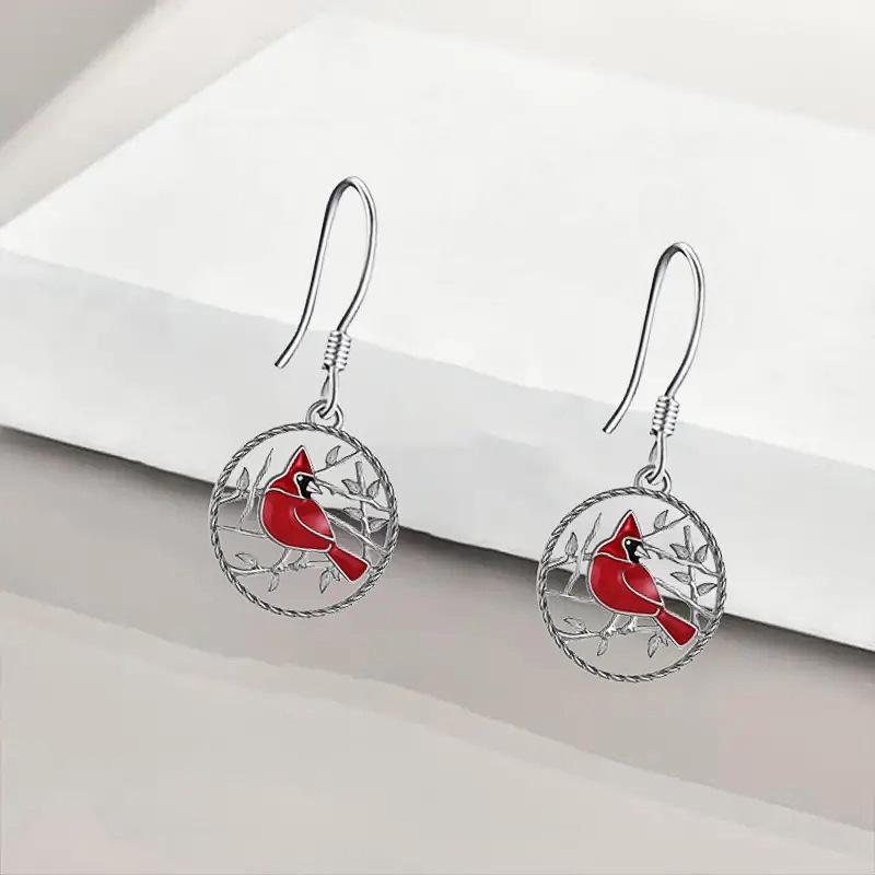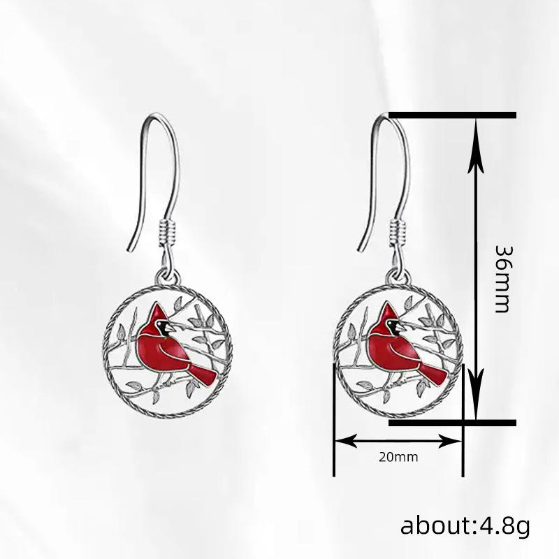 Orecchini Pendenti a Forma di Cardinale Placcati Argento, Gioielli Classici da Donna in Lega, Regalo di Moda con Cristalli e Strass