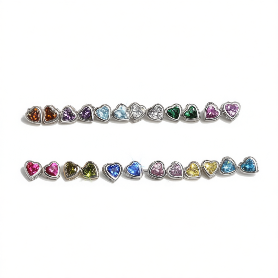 Silver Plated Heart Stud Earrings With Crystal Rhinestones For Everyday Wear Unisex Cute Jewelry Zinc Alloy Bezel Setting