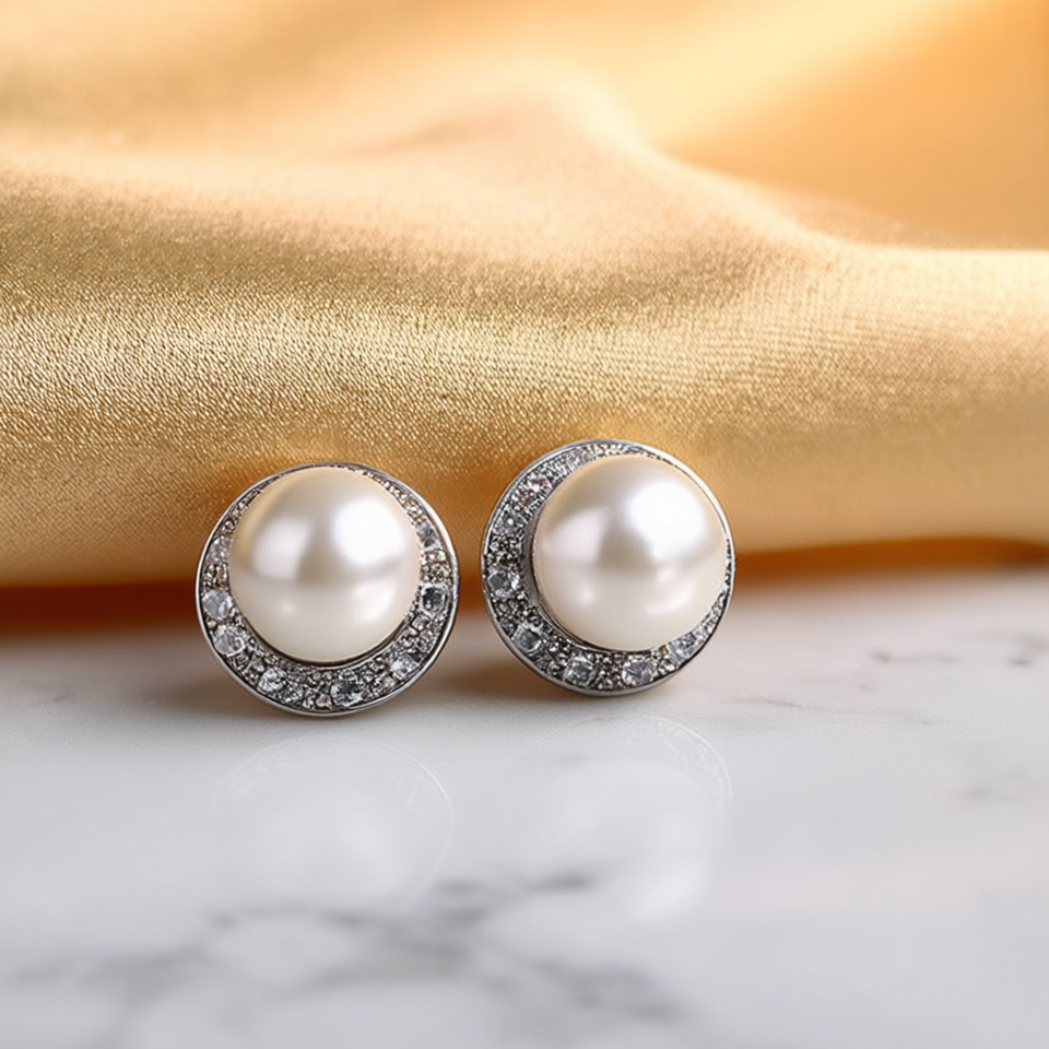 Orecchini a clip con perle finte placcate in argento, taglio brillante rotondo, montatura a castone, gioielli classici da donna per matrimoni.