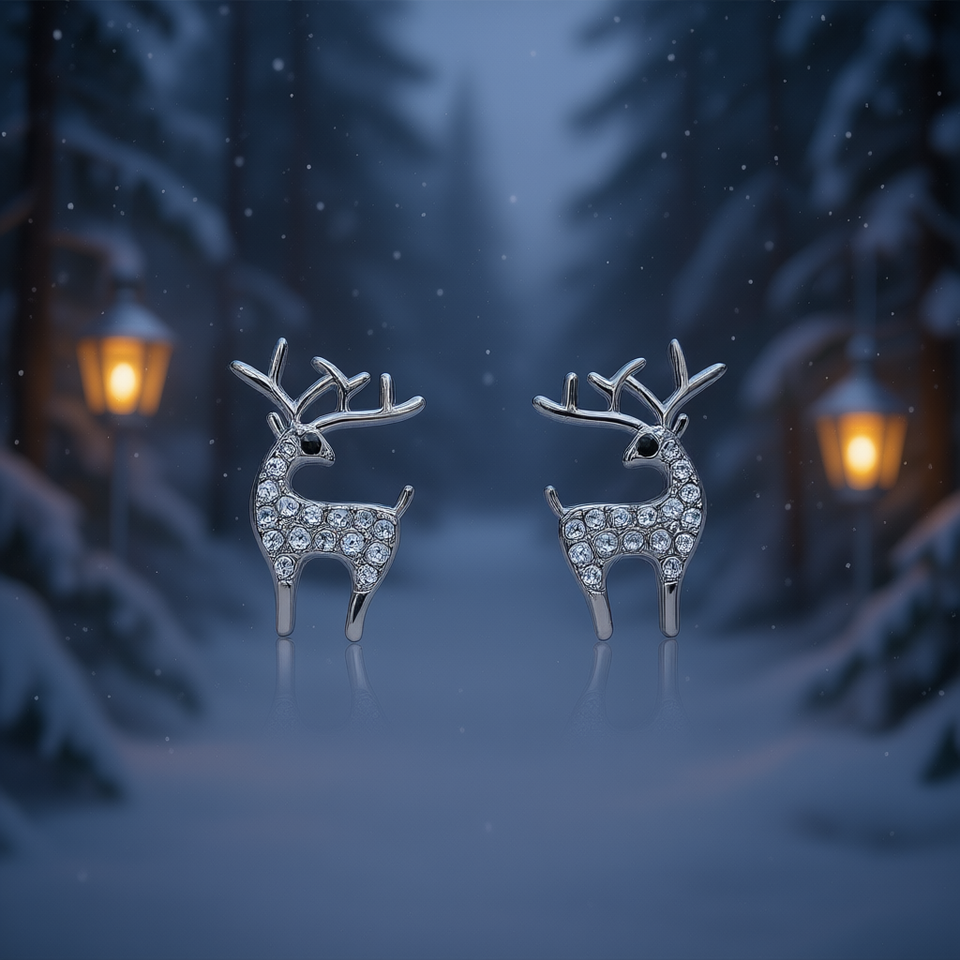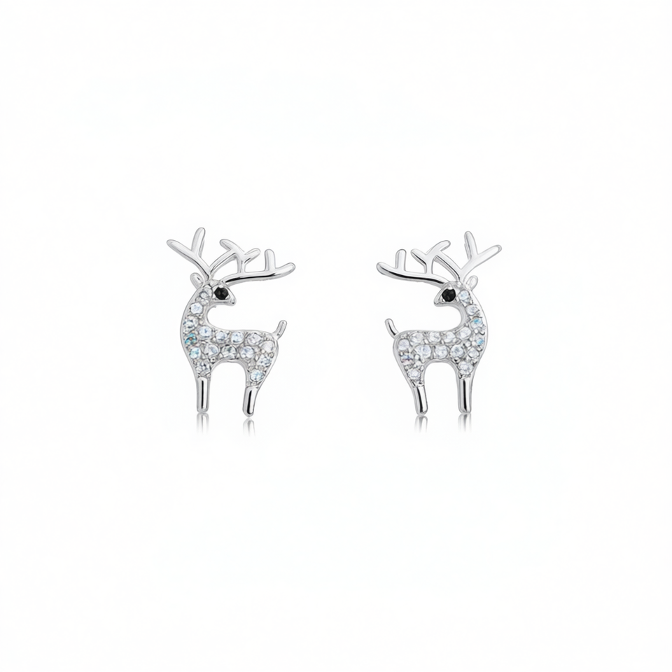 Silver Plated Reindeer Stud Earrings With Crystal Rhinestones For Women Cute Animal Fashion Jewelry Gift