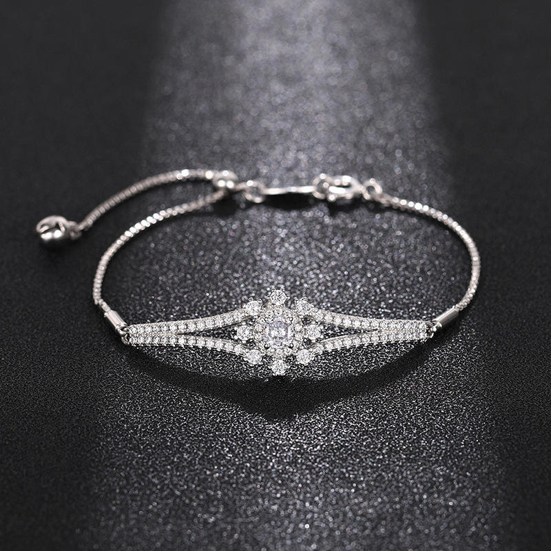 Bracciale in Argento Sterling 925 con Cristalli a Fiocco di Neve, Placcato in Rodio, Stile Tennis Classico per Uso Quotidiano Femminile