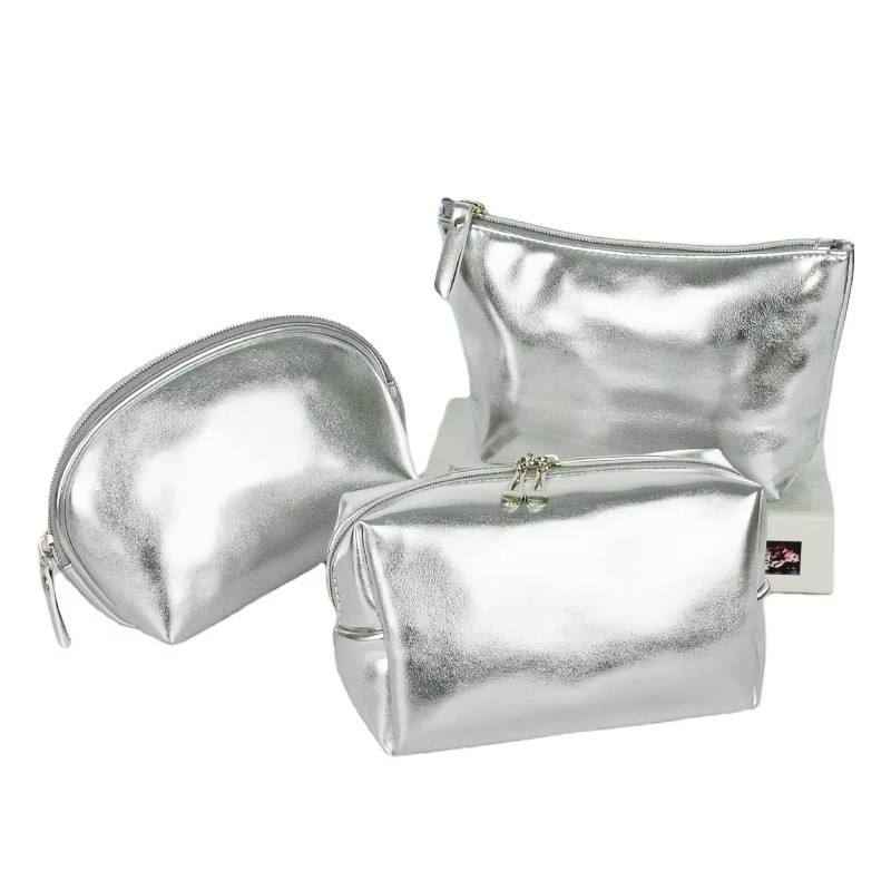 Borsa per il trucco in morbida pelle argentata, impermeabile, portatile, in tre pezzi, per viaggi d'affari B0013