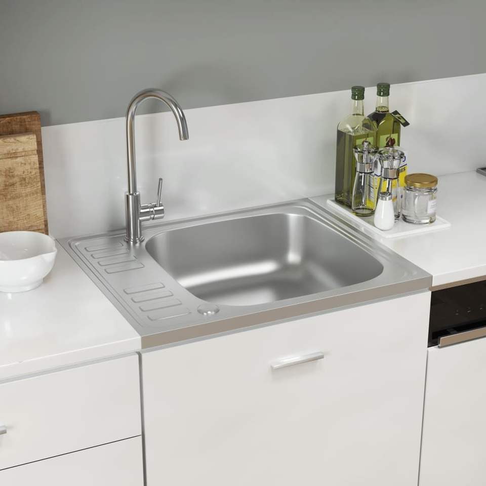 Silver Stainless Steel 19.7"x23.6"x6.1" Kitchen Sink with Drainer Set