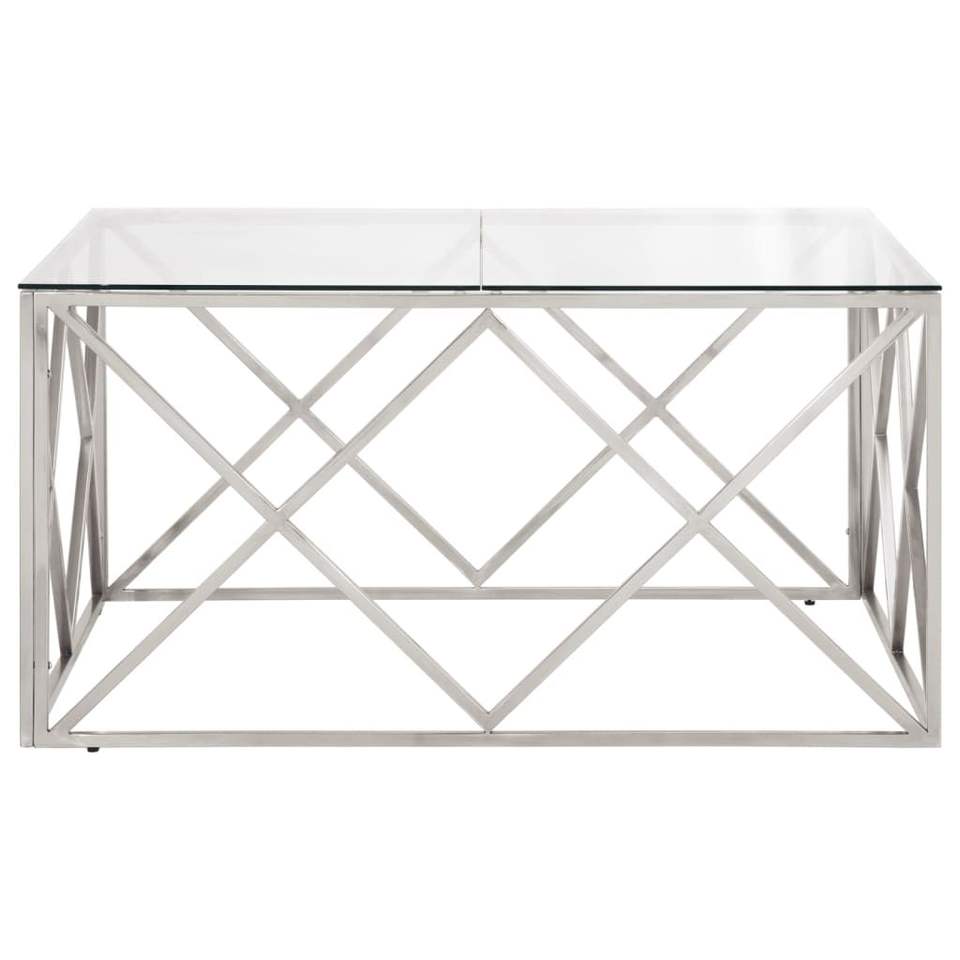 Tavolino da Caffè in Acciaio Inossidabile Argento e Vetro Temperato