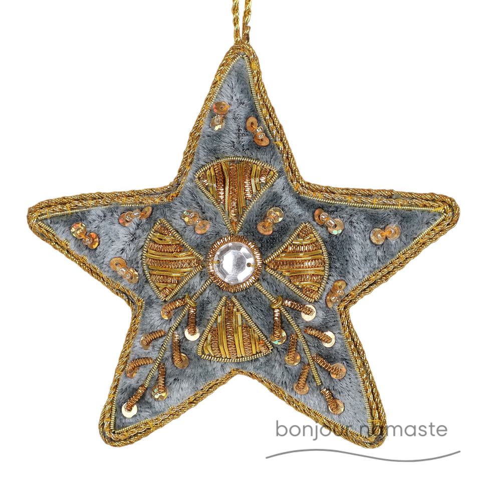 Ornamento di natale in rilievo moderno a forma di stella d'argento fatto a mano opaca con finitura personalizzata | Decorazione per le vacanze ecologica sostenibile