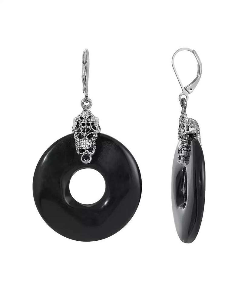 Orecchini pendenti rotondi color argento nero | 2028
