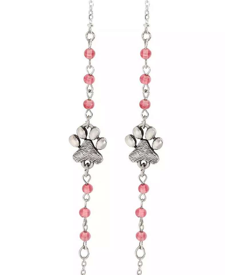 Collana con perline acriliche rosa rotonde a forma di zampe di cane color argento | 2028
