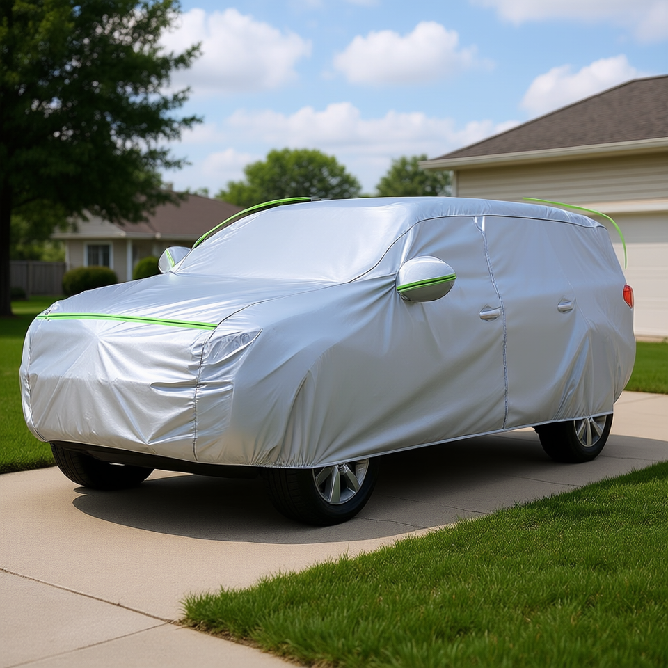 Silver Universal SUV Car Cover 191-207 Inches Waterproof All Weather Sun Hail Protector Door Zipper Polyester Material