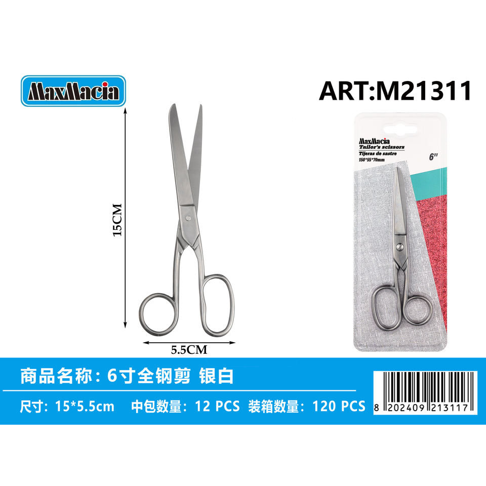 Silver White 6 Inch All-Steel Tailor's Scissors Durable Precision Cutting Shears