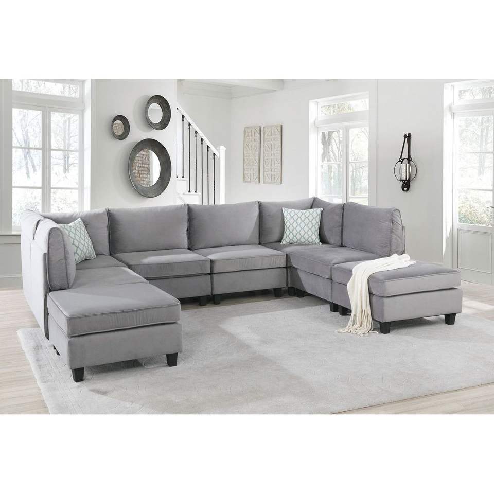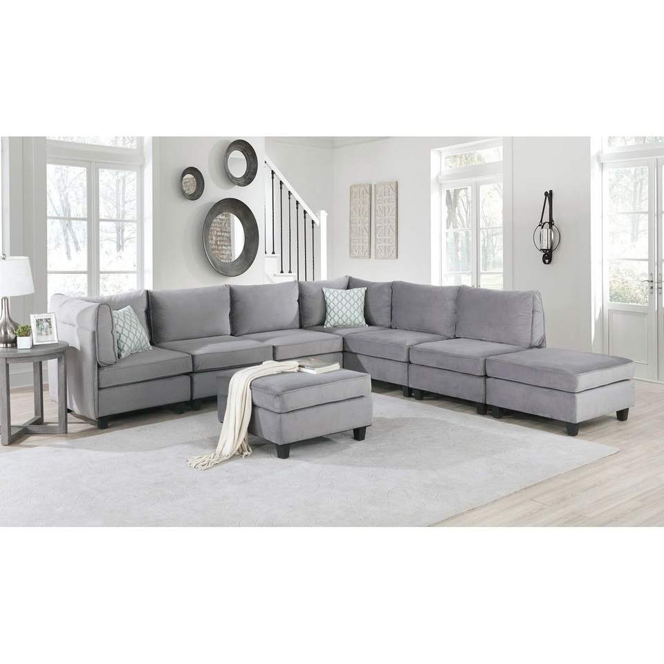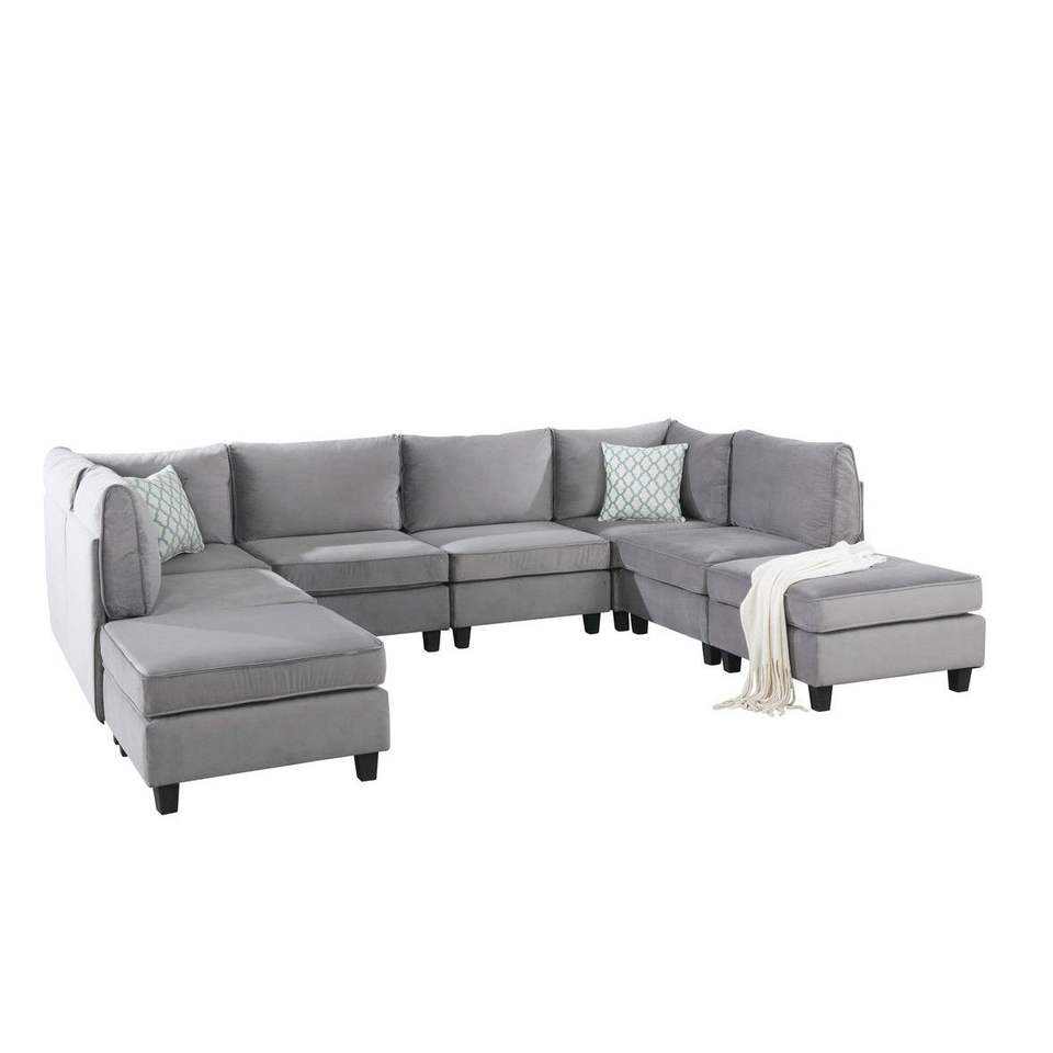 Divano Componibile Modulare Simona 120 in Velluto Grigio a 8 Pezzi per Soggiorno