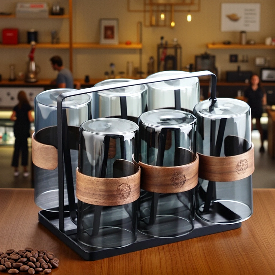 Product Name:Cups With Wooden Handle 6 Pcs Sets With Holder