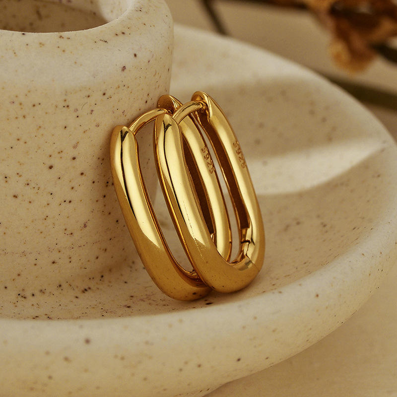 Semplici 925 in argento Sterling grandi orecchini rettangolari cilindrici alla moda coreane gioielli da donna placcati in oro 18K