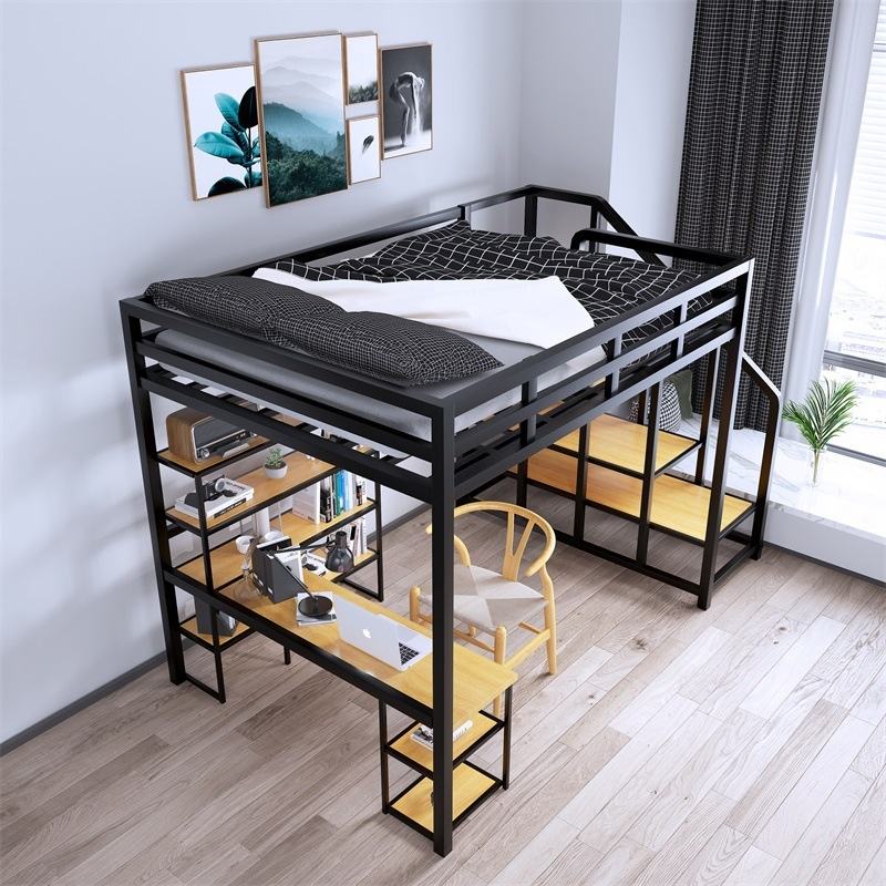 Semplice arte doppio strato letto a soppalco morbido con singolo appartamento risparmio di spazio scrivania inferiore stile camera da letto