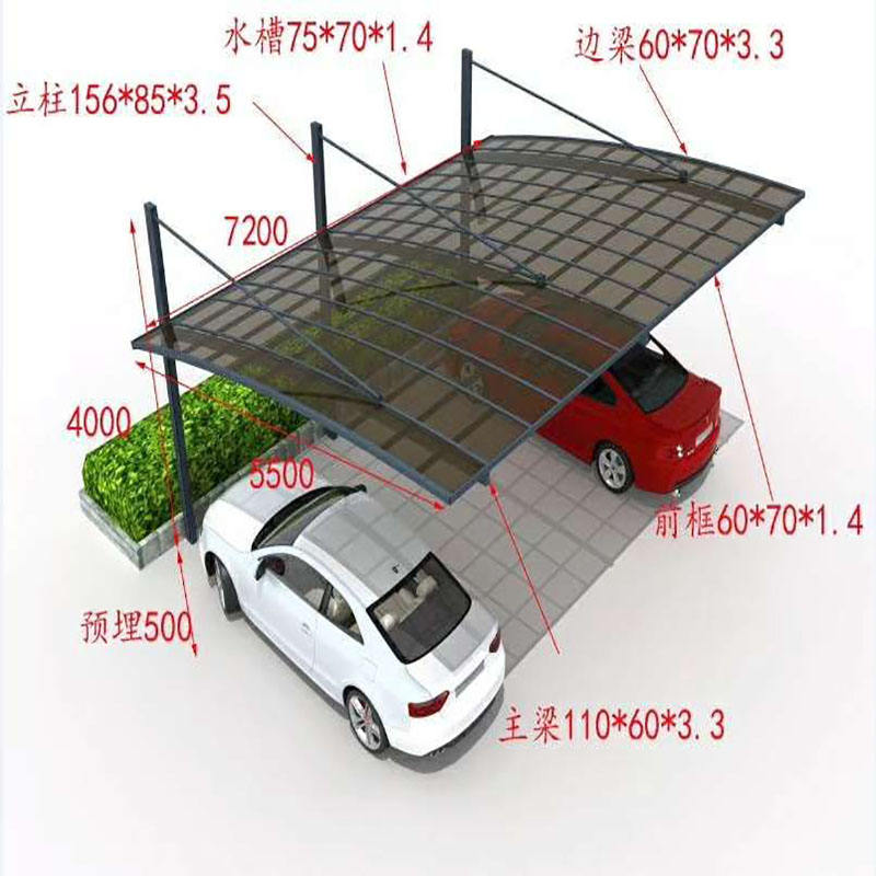 Dimensione del doppio carport:6.* 5.5*3m, su misura di qualsiasi dimensione
