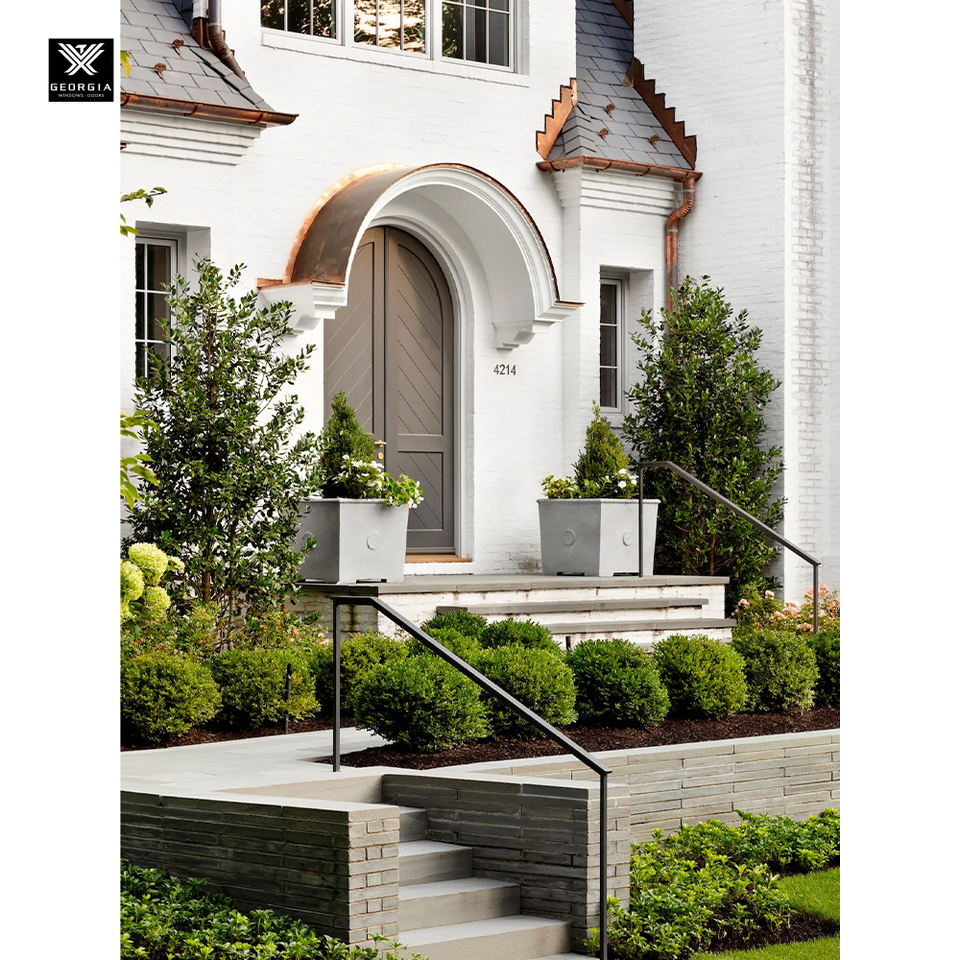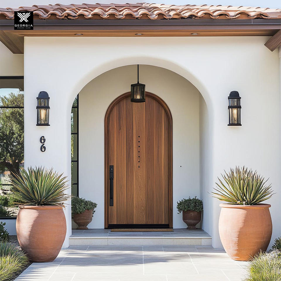 Simple Design Arched Wooden Entry Door for Houses Mahogany Chevron Pattern Main Doors Solid Wood Round Top Door Home Decoration