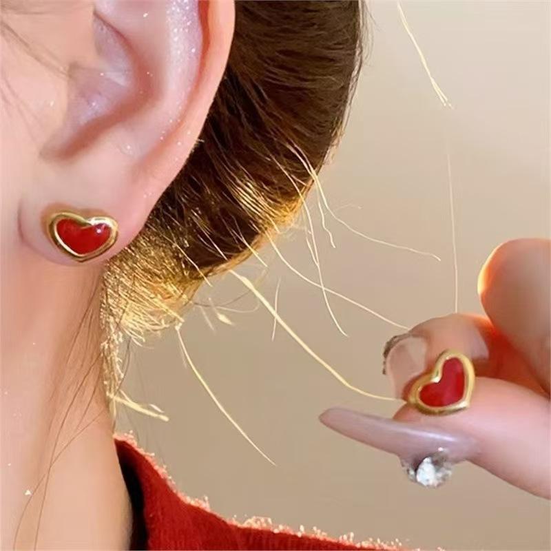 Semplice collana con pendente a cuore in stile francese per donna, realizzata in acciaio inossidabile e smalto, a forma di cuore.