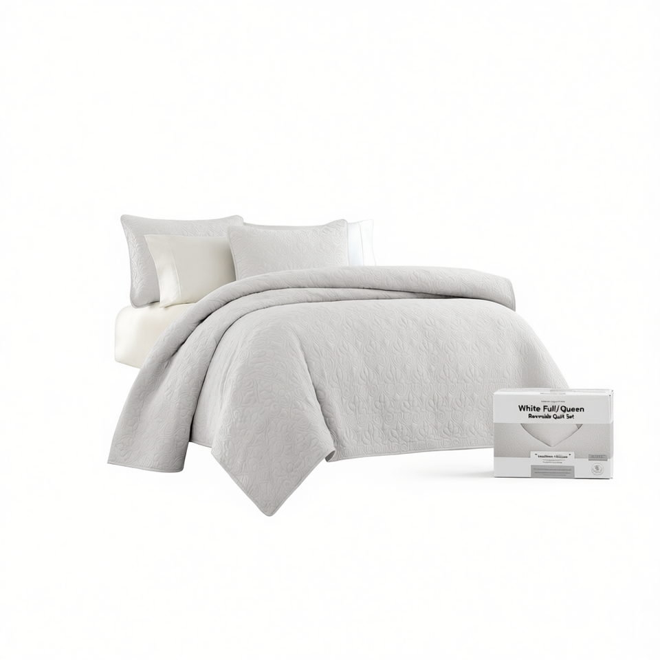 Set Copripiumino Reversibile Semplice Bianco per Letto Matrimoniale/Queen, 3 Pezzi in Poliestere, per Tutte le Stagioni