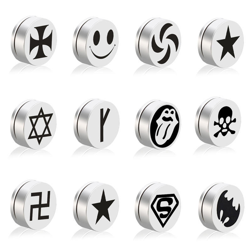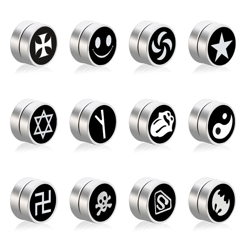 Simple Korean Personality Jewelry Stainless Steel Figure Magnet Earrings for Men