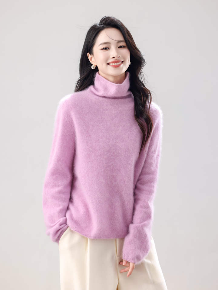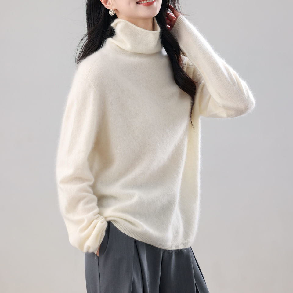 Semplici colori solidi sono adatti per la stratificazione sotto i maglioni di Cashmere a collo alto bianchi da donna