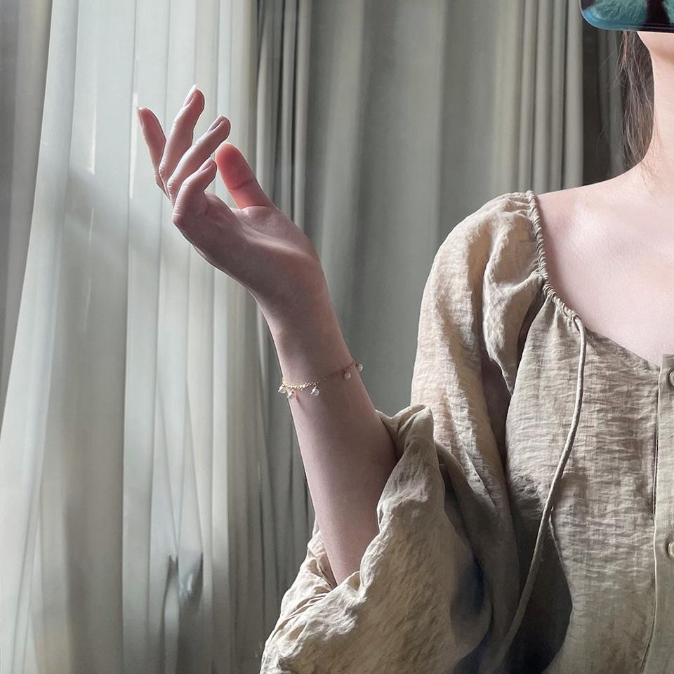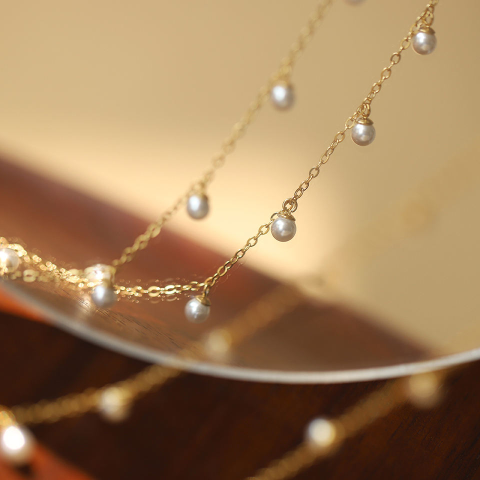 Bracciale estivo alla moda per ragazze con catena a maglie in acciaio inossidabile placcato oro 18 carati e ciondoli a perla rotonda, resistente all'ossidazione.