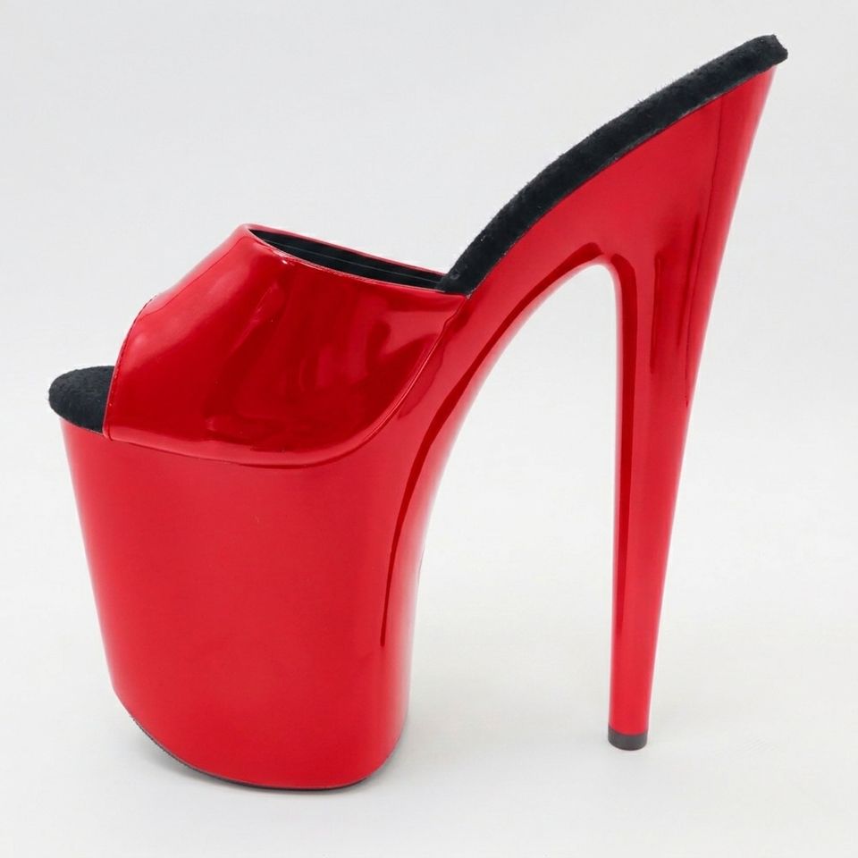 Simple-Temperament 8"20cm Height Increasing Super High Thin Heel Patent Leather Runway Catwalk Model Sandals Plus Size Open Back