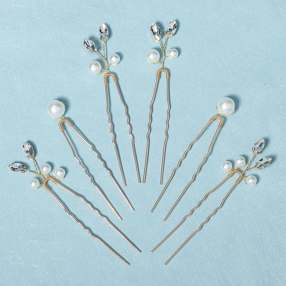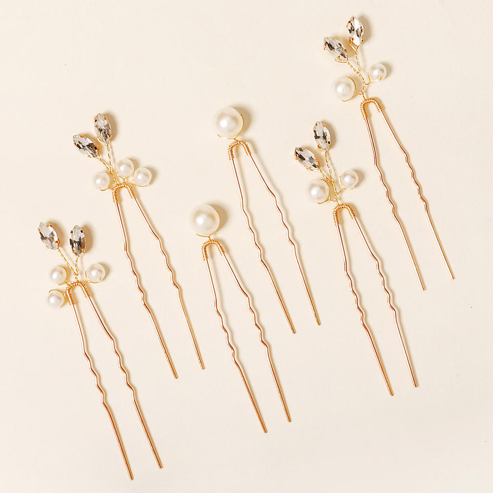 Temperamento semplice tornante prezioso di alta qualità perla e foglie di metallo acconciatura decorazione fissa forcina per cena di nozze (6 pezzi)