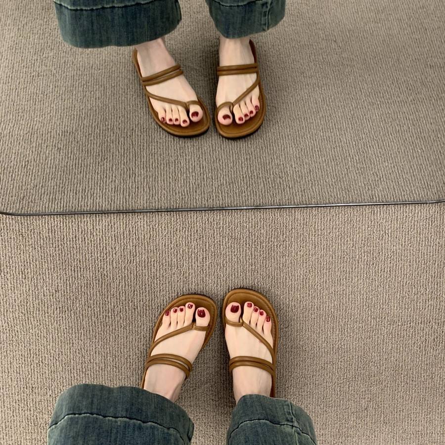 Sandali piatti semplici e versatili da donna per l'estate al mare, alla moda, casual, con suola morbida e comodi